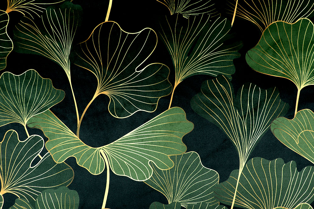 Edler Premium-Samtstoff mit opulentem Ginkgo-Design