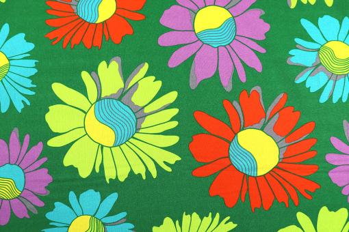 Große Blüten auf reiner Baumwolle - eine knallige Farbenpracht im Stil der 70er!