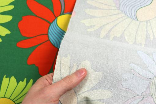 Knallbunt, opulent und mit Retro-Flair - reine Baumwolle für Kissen, Polster, Gardinen und vieles mehr.Große Blüte: ca. 27 cm breit