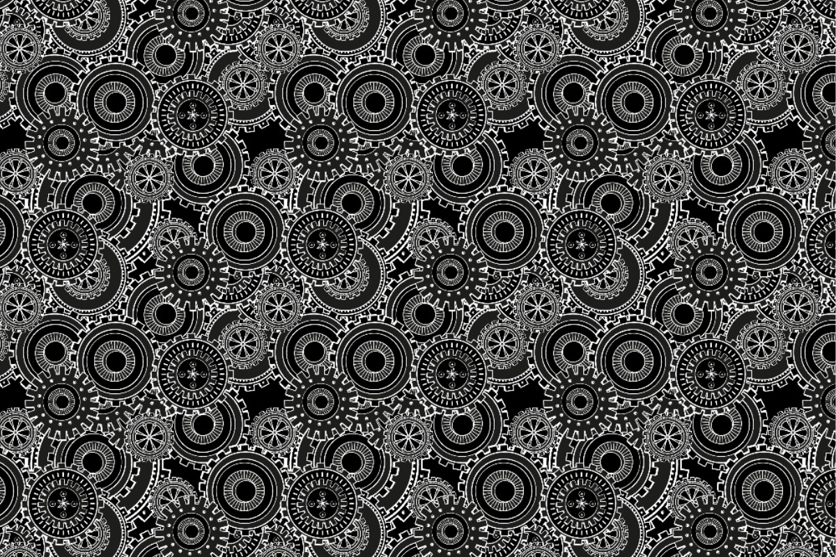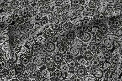 Dekostoff Steampunk - Zahnrad Black and White