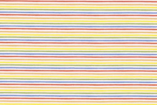 Sichern Sie sich jetzt diesen tollen Stoff aus 100% Baumwolle, der mit einem bunten Streifenmuster bedruckt ist. Ideal für alle Arten von Innendekorationen wie Kissen, Tischwäsche und Gardinen/Vorhänge! Auch Bastel-, Patchwork und Quiltarbeiten sehen mit diesem Stoff toll aus. Oder setzen Sie ihn für Oberbekleidung wie Blusen, leichte Sommer- und Kinderkleidung und auch für schöne Fasnachts-/Karnevalskostüme ein! Der Stoff ist bedingt blickdicht und matt, mit einem natürlichen Warengriff.