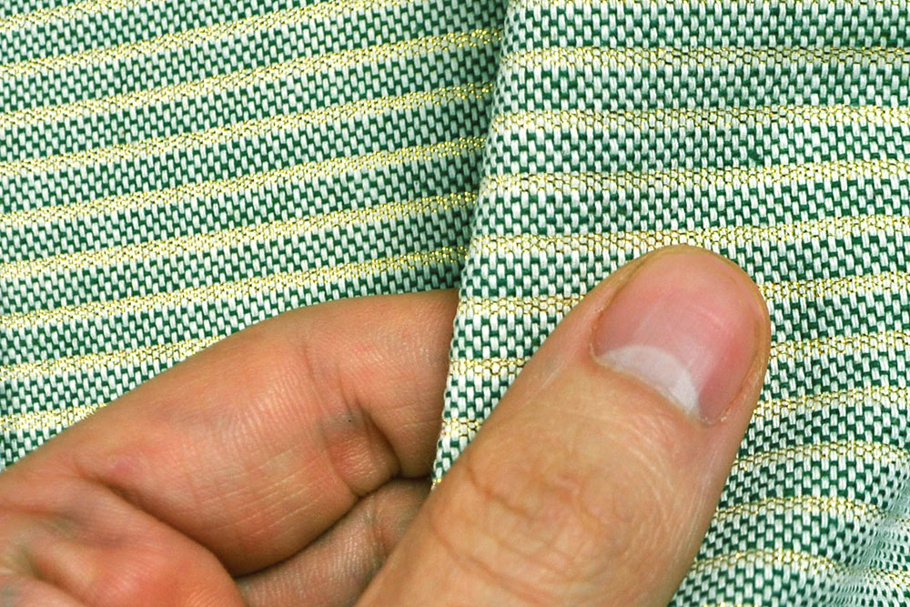 Glitzernder Dekostoff mit durchgewebtem Streifenmuster - perfekt für Kissen, Gardinen und vieles mehr!