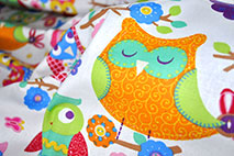 Auf den schön bedruckten Stoffe finden sich Eulen, die erklärten Lieblinge neben anderen Vögeln, aber auch Schmetterlinge & Co. zaubern die gewünschte Atmosphäre.