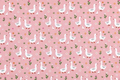 Feiner Baumwollstoff mit süßem Gänsemotiv, das für Landhausfeeling sorgt