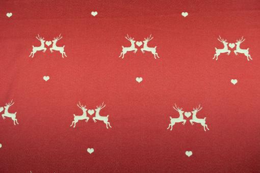 Beidseitig verwendbarer Jacquard aus Baumwollmischgewebe mit herzigem Hirsch-Motiv in Rot/Creme