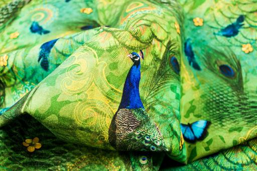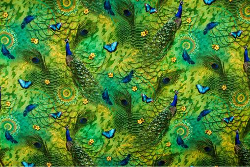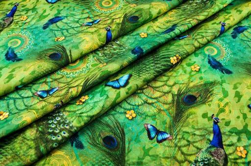 Dekostoff Digitaldruck - Pfauen und Schmetterlinge