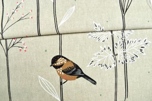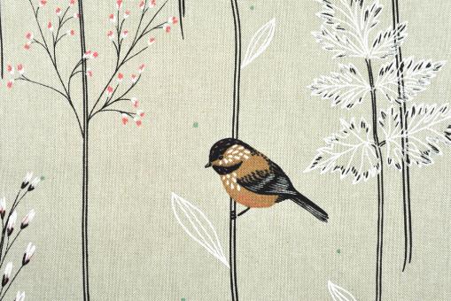 Schöner Dekostoff mit vielen kleinen Vögeln auf Zweigen und großen Blättern. Neben seinem tollen Motiv überzeugt der Stoff auch durch seine natürliche Leinen-Optik und die leicht strukturierte Oberfläche. Durch den hohen Baumwoll-Anteil hat er einen weichen und hautsympathischen Warengriff. Das Material der Wahl für Innen-Deko aller Art, wie Kissen, Tischdecken, Vorhänge, Accessoires und vieles mehr! Perfekt als Eyecatcher in Ihren vier Wänden - lassen Sie Ihrer Kreativität freien Lauf!Das Material ist pflegeleicht und einfach zu verarbeiten. Natürlich finden Sie das dazu passende Nähzubehör wie Nadeln und Garn ebenfalls bei uns im Shop.