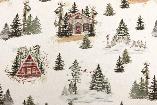 Winter Lodge ist der Stoff für alle, die von knisterndem Kaminfeuer, Tannenwald und einer warmen Decke träumen. Das detailverliebte Design zeigt verschneite Hütten, Waldlandschaften und sanfte Winterfarben – wie gemalt und perfekt für gemütliche Dekoprojekte in der kalten Jahreszeit.