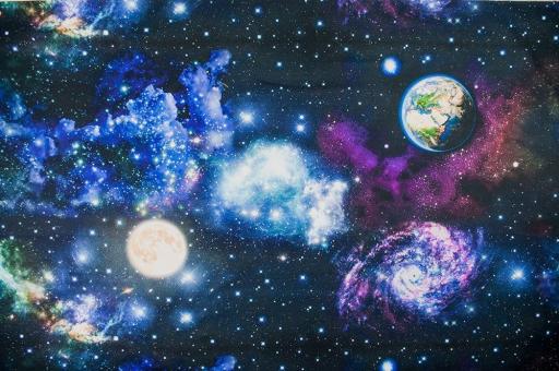 Die unendlichen Weiten des Weltalls können nun auf digital bedruckter Baumwolle Ihre vier Wände und vieles mehr schmücken
