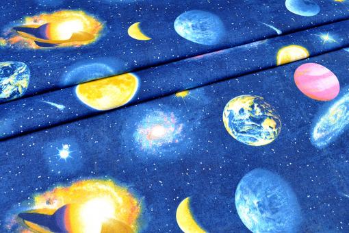 Bereit für eine Reise ins All? Toller Dekostoff mit aufwendig gestaltetem Motiv - vielseitig einsetzbar!