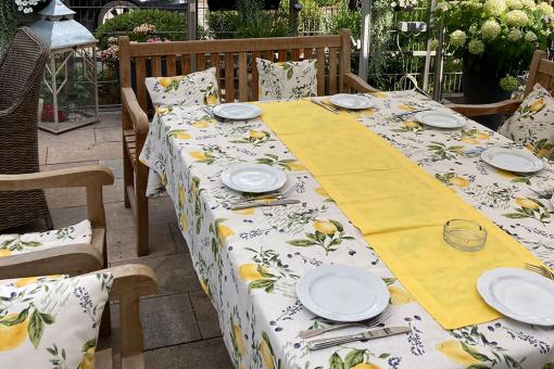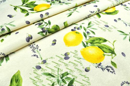 Mediterran-sommerlich daherkommender Dekostoff, dessen Überbreite ungeahnte Gestaltungsmöglichkeiten offenbart!