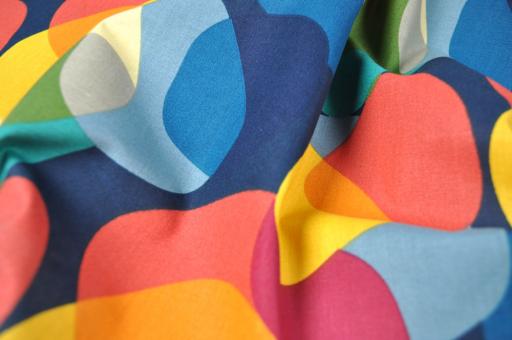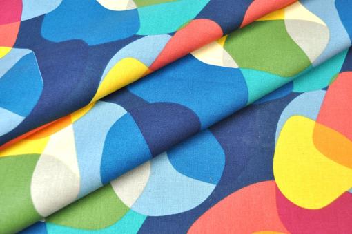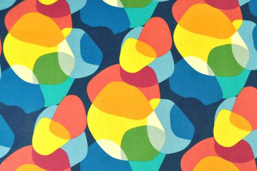 Digital bedruckter Baumwollstoff mit bunten Retro Kreisen - ideal für Dekorationen aller Art