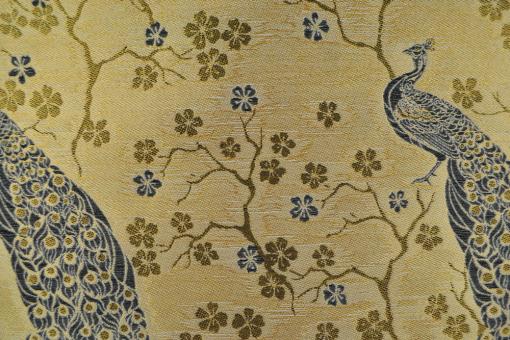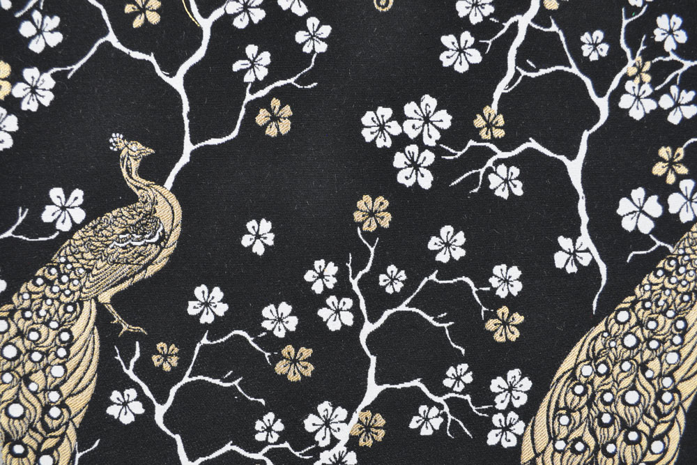 Aufwändig gewebter Jacquard-Stoff mit romantischem, botanischem Vogel-Muster