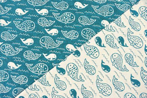 ist besonders raffiniert: Dieser tolle Jacquard-Stoff mit dem süßen Wal-Motiv ist beidseitig einsetzbar. Entweder