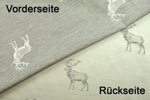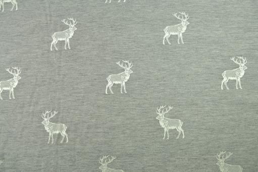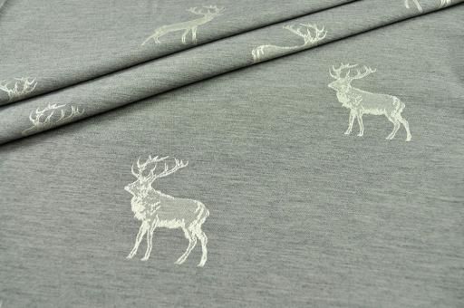 Dekostoff Jacquard - zweiseitig - Hirschrudel - Grau