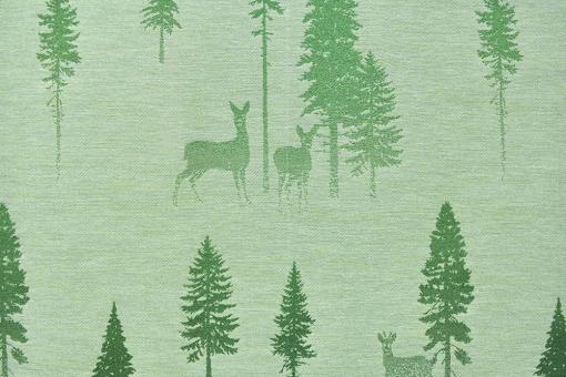 Dekostoff Jacquard - zweiseitig - Rehe im Wald - Hellgrün/Grün