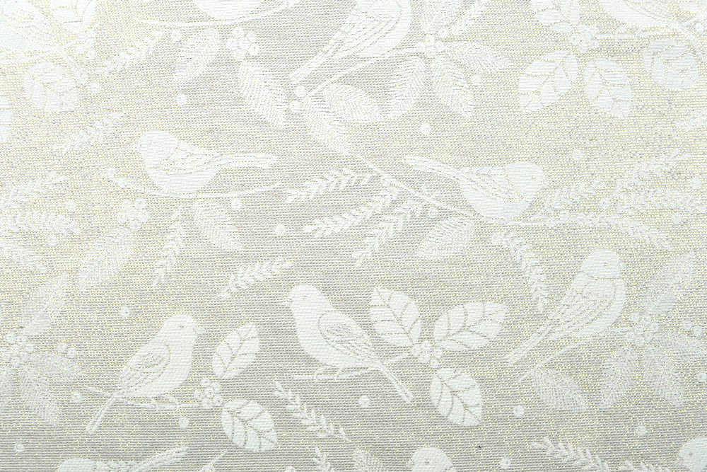 Dies ist ein reduziertes Reststück von regulärer Meterware. Die Länge des Stoffstücks entnehmen Sie bitte dem Artikelnamen.Dieser Jacquard verzaubert mit einem Goldschimmer, den unsere Kamera nicht einzufangen vermag. In Natura glitzert der Stoff im Licht wie Schnee in der Sonne. Sowohl das zarte Vogel-Motiv als auch der Goldschimmer wurden aufwändig eingewebt. Der Dekostoff aus pflegeleichtem Mischgewebe eignet sich für Dekorationen und Heimtextilien aller Art. Egal, ob als Übergardinen, Tischwäsche, Kissen oder Bettüberwürfe, als Raumteiler, usw. - dieser Stoff sorgt für umwerfende Akzente. Die Ware ist bedingt blickdicht und matt, mit einem natürlichen Warengriff.