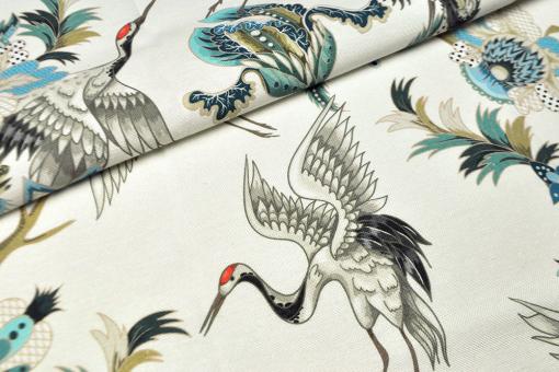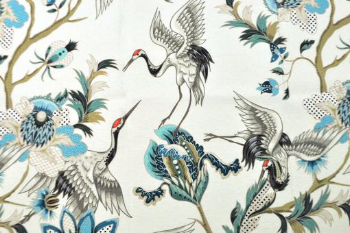 Auf diesem Dekostoff gibt es viel zu entdecken. Er überzeugt mit einem wunderschönen, sehr detailreichen und exotischen Motiv.Die hochwertige Ware eignet sich hervorragend für Heimtextilien aller Art, wie Übergardinen, Tischwäsche, Kissen oder Bettüberwürfe, als Raumteiler, usw. Egal, in welcher Form, dieser Stoff bringt Atmosphäre in die Räume!
