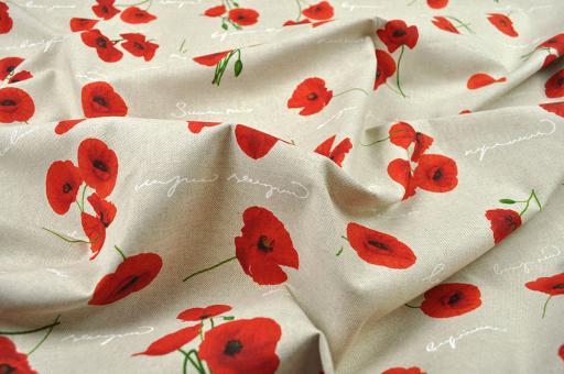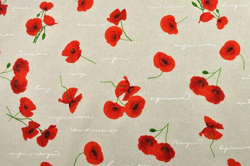 Sagen Sie es durch die Blume! Der romantische Dekostoff aus pflegeleichtem Mischgewebe ist dekorativ mit Mohnblüten bedruckt und eignet sich für Heimtextilien aller Art. Egal, ob als Übergardinen, Tischwäsche, Kissen oder Bettüberwürfe, als Raumteiler, usw. - dieser Stoff bringt Atmosphäre in die Räume. Die Ware ist bedingt blickdicht und matt, mit einem natürlichen Warengriff.