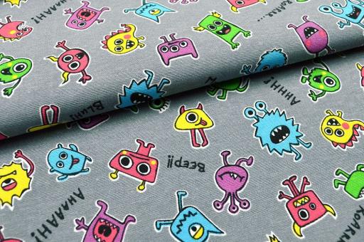 Vor den witzigen Monstern auf diesem natürlich wirkenden Dekostoff muss man keine Angst haben