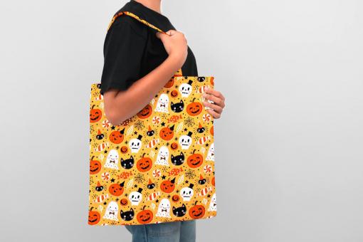Ein toll gestaltetes Halloween-Motiv ziert diesen Dekostoff. Lassen Sie sich von Katzen, Kürbissen und freundlichen Geistern in schaurig, fröhliche Halloween Stimmung bringen. Der Stoff hat eine schöne Optik, einen geschmeidigen Fall und ist auf der Rückseite weiß. Toll geeignet als Deko-Stoff in den verschiedensten Bereichen. Selbstverständlich kann dieser Stoff auch für Bekleidungen aller Art eingesetzt werden. Der Stoff ist pflegeleicht und zudem einfach zu verarbeiten. Passendes Nähzubehör finden Sie ebenfalls hier im Shop.Katze: ca. 4 cm