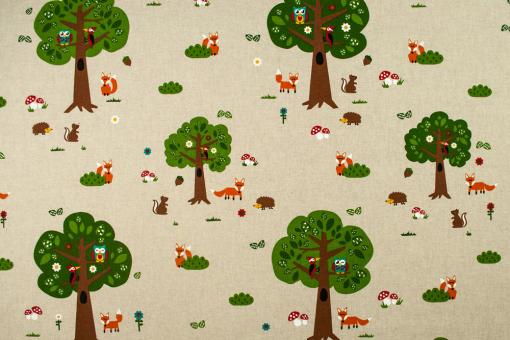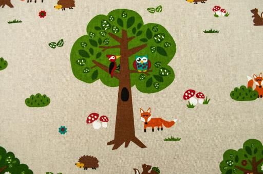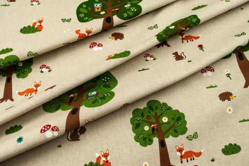 Dekostoff - Tierkinder im Laubwald