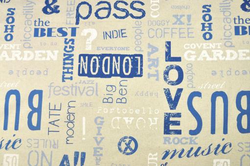 Dekostoff deluxe - British Feeling - Schriftzüge - Blau