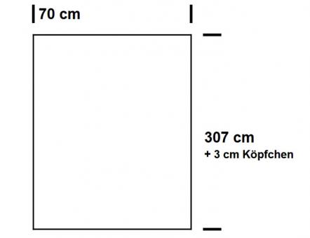 • Breite: 315 cm / Höhe: 42 cm + 0,5 cm Köpfchen