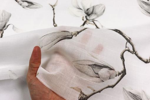 Dieser schön fallende Stoff mit floralem Muster eignet sich super für hochwertige Gardinen in Ihren vier Wänden. Er hat eine dezente Webstruktur, die an Leinen erinnert.Gr. Blatt: ca. 10 cm