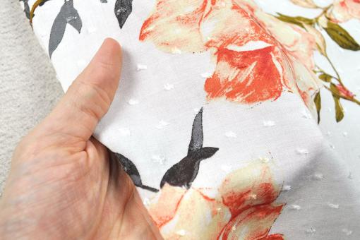 Dieser Viskosestoff ist mit einem Blumen-Muster auf einem weißem Hintergrund bedruckt. Er besitzt ein feines Oberflächenbild, ist weich, geschmeidig und trägt sich sehr angenehm auf der Haut. Die Optik und der Warengriff wurden mit eingewobenen Stoffknötchen ordentlich aufgepeppt. Er eignet sich bestens für besonders luftige Bekleidungszwecke, wie Blusen und Kleider, aber auch Dekorationen wie Vorhänge und vieles mehr sehen mit diesem Stoff umwerfend aus. Das Material ist pflegeleicht und einfach zu verarbeiten.Natürlich finden Sie dazu passendes Nähzubehör, wie Schrägband, Garn etc. ebenfalls bei uns im Shop.
