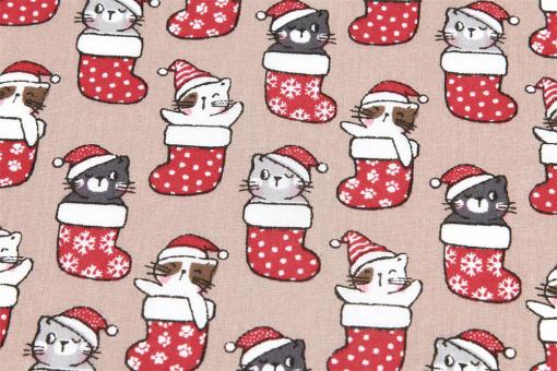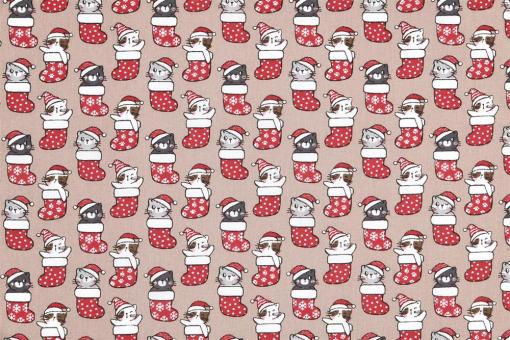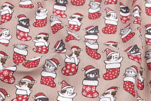 Baumwollstoff - Weihnachts-Kätzchen