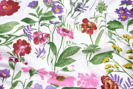 Panama-Dekostoff, der Sie mit einem floral-verträumten Design sofort in eine Sommerwiese versetzt!