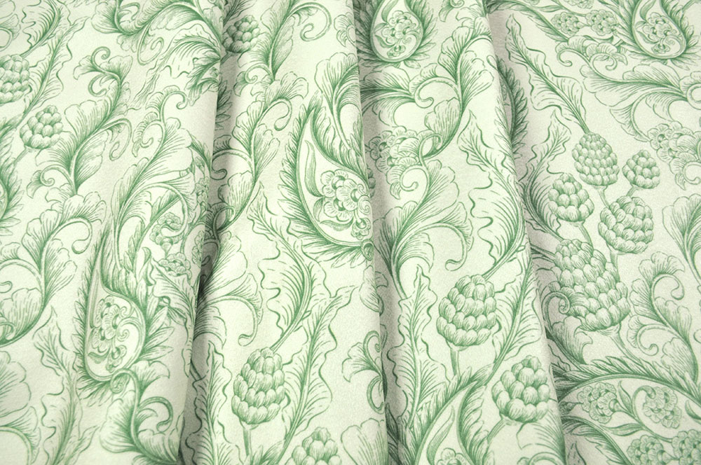 Wärmevorhang - Barock - Florales-Motiv Creme/Dunkelgrün