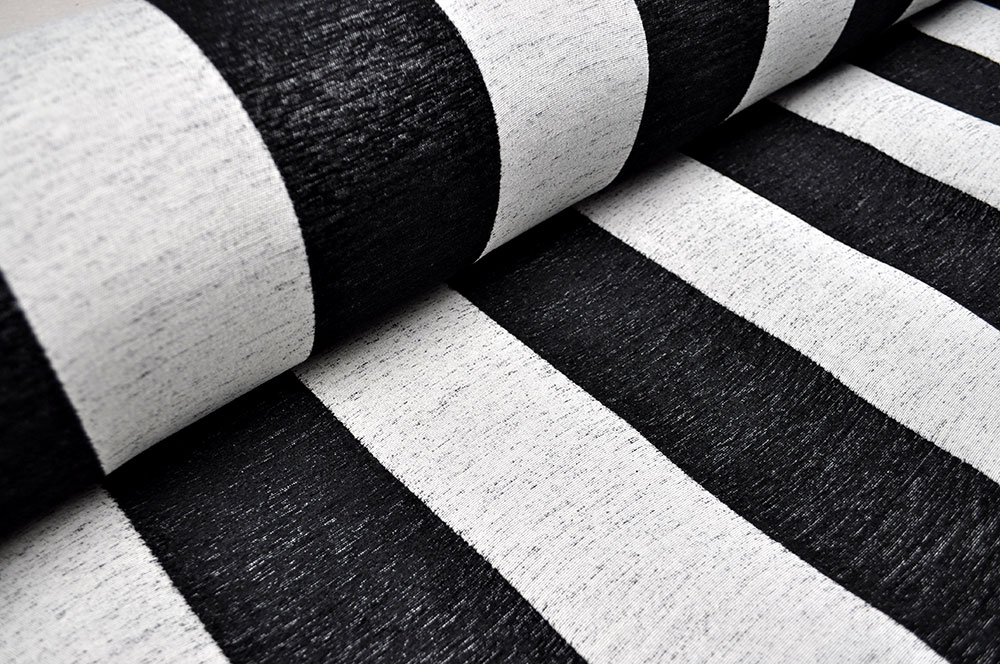 Wende-Wärmevorhangstoff Chenille - Blockstreifen Hellgrau/Schwarz