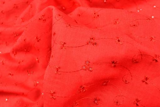 Baumwoll-Batist Lochstickerei Kirschrot