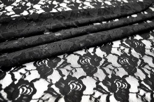 Dieser sehr hochwertige Spitzenstoff zeichnet sich durch das elegante Blütenmuster aus und ist ganz besonders weich und elastisch - da kratzt garantiert nichts auf der Haut! Das perfekte Material für alle, die ihren Körper nicht in fertige Wäsche-Teile hüllen möchten - gestalten Sie Ihre verführerischen Stücke selbst. Auch toll, um bestehende Kleidung aufzuwerten, z.B. mit Spitzen-Applikationen, Einsätzen, Armabschlüssen usw. Die Spitze fällt sehr schön, ist anschmiegsam und durch die Dehnbarkeit in verschiedensten Bereichen einsetzbar. Auch ideal für Kostüme, festliche Bekleidung, Dessous und natürlich für Dekorationen aller Art. Ein echter Eyecatcher!Blüte: ca. 4 cm