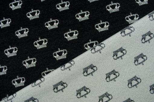 Dieser Stoff setzt Ihren Kreationen die Krone auf! Dies ist ein besonders schöner, beidseitig verwendbarer Jacquard-Stoff mit tollen eingearbeiteten Kronen.Jacquard-Stoffe sind aufwändig hergestellte Stoffe mit durchgewebten Mustern. Die Ware hat eine besonders hochwertige und fein gewobene Qualität, die sich für Heimtextilien wie Übervorhänge, Kissenbezüge, Überwürfe, aber auch für Accessoires wie Taschen, Etuis und ausgefallene Oberbekleidung wie Mäntel und Jacken sehr gut eignet. Hier wird garantiert jedes Objekt, das daraus genäht wird, alle Blicke auf sich ziehen!