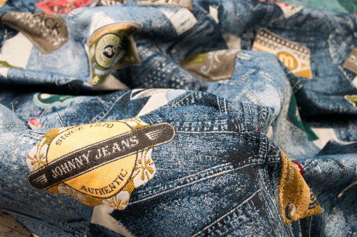 Der ultmative Dekostoff für Jeansliebhaber: Diesen attraktiven Jacquard-Stoff zieren schöne Labels von Jeansmarken - ein Statement für Jeans!Jacquard-Stoffe sind aufwändig hergestellte Stoffe mit durchgewebten Mustern. Die Ware ist eine hochwertige und feste Qualität, die sich für Heimtextilien wie Übervorhänge, Kissenbezüge, Überwürfe, aber auch für Accessoires wie Taschen, Etuis und ausgefallene Oberbekleidung wie Mäntel und Jacken super eignet. Hier wird jedes Objekt, das daraus genäht wird, zum Hingucker!
