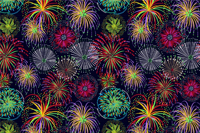 Geschmeidiger und glänzender Satin mit Feuerwerk-Aufdruck