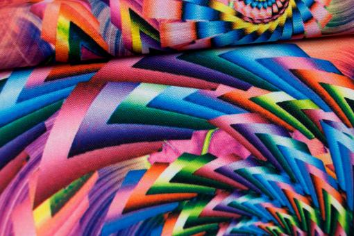Wow - dieser universell einsetzbare Polyester-Stoff fällt mit seinem exzentrischen Muster sofort ins Auge! Die leuchtenden Farben ziehen alle Blicke auf sich! Dieses Material ist ideal für allerlei DIY-Projekte. Sei es ausgefallene Bekleidung, außergewöhnliche Kostüm-Ideen oder auffällige Accessoires. Mit Heimtextilien, wie z.B. Kissenbezügen oder Bespannungen aus diesem Stoff, setzen sie aufregende Akzente! Bringen Sie Farbe in Ihr Leben!