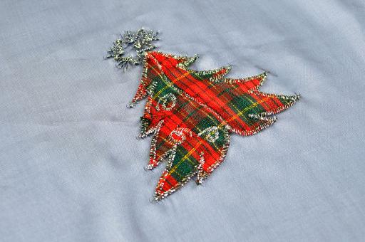 Karo-Baum und Stern - Weihnachts-Organza mit Stickerei