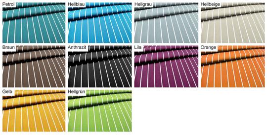 Mit diesem wasserabweisend ausgerüsteten Markisenstoff schaffen Sie sich einen schönen und effektiven Sonnenschutz, dem auch mal etwas Regen nichts ausmacht. Das wunderbare Streifen-Design in Verbindung mit kräftigen, schönen Farben macht sofort Lust darauf, sich auf den Balkon zu setzen und die Sommerluft zu genießen.