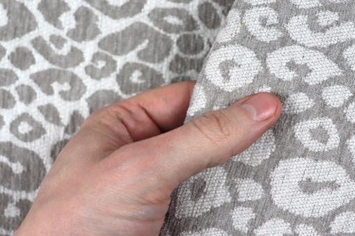 Das trendige Leomuster entsteht direkt im Webprozess – nicht durch Druck – und sorgt so für eine edle Optik sowie eine dauerhaft gleichbleibende Erscheinung, selbst auf großflächigen Polsterformen.Chenillegarne in Kette und Schuss verleihen dem Stoff eine außergewöhnlich weiche Haptik.
