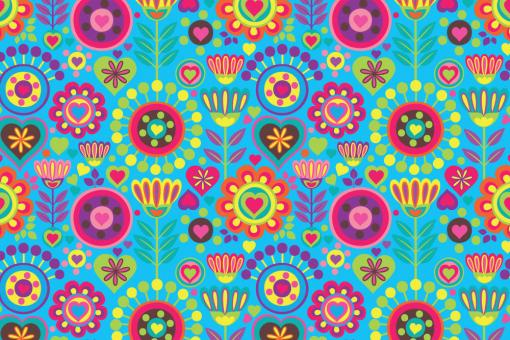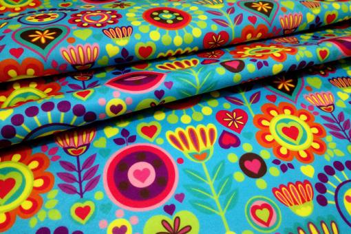 Fleece-Stoff - Retro-Blumenwiese Hellblau