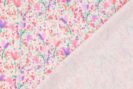 Dieser blumige Plissee-Jersey überzeugt durch seinen geschmeidigen Warengriff und die hohe Qualität. Das Material mit einem Elasthan-Anteil von 3% fällt sehr locker und ist super elastisch in alle Richtungen. Somit eignet sich dieser Jerseystoff ausgezeichnet für bequeme Bekleidung wie z. B. Baby-/Kinderkleidung, T-Shirts/Tops, Sportbekleidung, Schlafanzüge und für alles, was nicht kneifen und zwicken soll. Natürlich lassen sich auch Accessoires und Heimtextilien, wie z. B. Kissenbezüge, hervorragend aus diesem Material fertigen.Das passende Zubehör finden Sie ebenfalls hier bei uns im Shop.