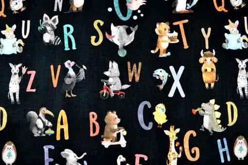 Popeline Digital - Tier ABC - Schwarz
