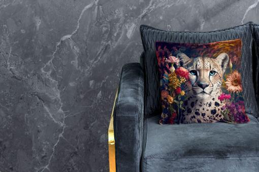 Liebhaber außergewöhnlicher Designs aufgepasst – hier kommt ein digital bedruckter Samt-Stoff, der alle Blicke auf sich zieht! Bunte Blumen, majestätische Rosen und mittendrin ein eleganter Gepard – dieses Motiv entführt Sie in eine faszinierende Welt voller Farben und Exotik. Die Rückseite des Stoffes ist schlicht weiß und bildet den perfekten Kontrast zur lebendigen Vorderseite.Der Stoff ist kurzflorig und nimmt deshalb auch weniger Staub auf.
