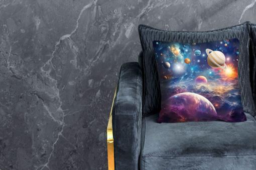 Design-Fans aufgepasst! Entdeckt unseren digital bedruckten Samt-Stoff mit einem spektakulären Motiv, das Sie in eine magische Welt bunter Planeten entführt. Jeder Blick offenbart faszinierende Details aus einem farbenfrohen Universum. Die Rückseite des Stoffes ist klassisch weiß gehalten. Ein Stoff wie kein anderer – perfekt für kreative Projekte!Der Stoff ist kurzflorig und nimmt deshalb auch weniger Staub auf.