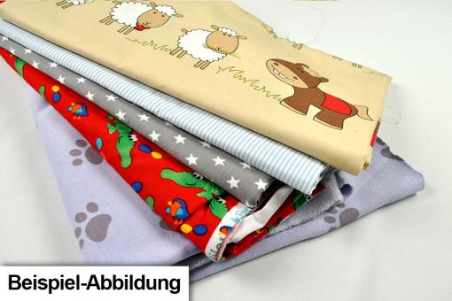 1 kg schweres Stoffpaket mit schönen Kinderstoffen in verschiedenen Längen, Farben und Materialarten