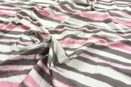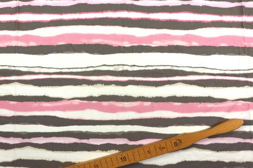 Viskosejersey - Querstreifen - Rosa/Taupe/Weiß